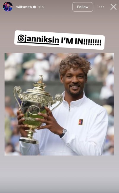 Знаменитый американский актёр Уилл Смит отреагировал на слова четырёхкратного победителя турниров «Большого шлема», второй ракетки мира итальянского теннисиста Янника Синнера о том, что Смит мог бы сыграть его в фильме.