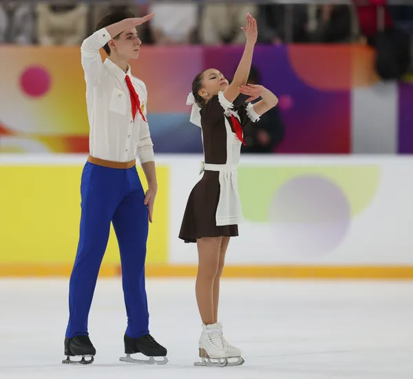 Позади два вида.В начале декабря уже традиционно проходит юниорский Кубок Первого канала. На этот раз самые яркие молодые фигуристы страны отправились в Калугу. В этом сезоне произошли серьезные изменения: во-первых, было увеличено количество команд, теперь их три. Организаторы решили порадовать болельщиков и личностями капитанов, пригласив легендарное трио — Анна Щербакова (розовая команда), Александра Трусова (салатовая команда) и Алена Косторная (голубая команда). Сами участники выступают только с произвольными программами. Здесь правила олимпийского командного турнира — очки засчитываются в зависимости от мест. В парных видах за первое место дается 10 баллов, за второе — 9, за третье — 8. Турнир открылся визитками, в которых приняли участие и сами капитаны, а после в качестве приглашенных гостей выступили Елизавета Пасечник и Дарио Чиризано со своим ритмическим танцем. Денис Тырин, Sport24 Лучшими в танцевальном турнире стали Елизавета Малеина и Матвей Самохин из команды Александры Трусовой. Их постановка на тему «Кармен» трансформируется и улучшается по ходу сезона. Выступать не только за себя более волнительно, поэтому прокат нельзя назвать идеальным. Самая серьезная ошибка случилась на твизлах — Матвей соскочил на первой секции, а во второй оба партнера сильно разошлись. После этого фигуристы стали больше нервничать, появилась грязь, но даже так они выполняли все на максимальные уровни. Оценка Малеиной/Самохина — 101,41 балла. Денис Тырин, Sport24 Участники команды Анны Щербаковой Мария Фефелова и Артем Валов заняли 2-е место. Эти фигуристы удивляют своей стабильностью и сложными темами. Программа под «Аве Марию» очень сложная, в самом начале был виден нерв, Артем дрожал на высокой поддержке, а Мария немного шаталась на твизлах. Только после этих элементов фигуристы смогли отпустить себя и расслабленно выступать. Прокат Фефеловой/Валова оценили в 100,52 балла. Денис Тырин, Sport24 На 3-м месте остались Таисия Шепталина и Дмитрий Пекин из команды Алены Косторной. По шагам и мастерству они изначально слабее своих соперников, но именно эти фигуристы показали свой танец без серьезных ошибок. Их интерпретация истории «Нотр-Дам-де-Пари» с мощным финалом, поэтому на второй части Таисия и Дмитрий выкладываются, хотя заметно, что сил остается не так много. Шепталина/Пекин набрали 95,73 балла. Денис Тырин, Sport24 Перед спортивными парами выступила Алиса Двоеглазова со своей произвольной программой. Фигуристка решила откатать без четверных прыжков, чтобы не потерять настроение и просто порадовать публику. Максимальное количество очков в парах снова у команды Александры Трусовой. Кира Доможирова и Илья Вегера с 125,23 балла стали лучшими. Их произвольная программа под любимые всеми песни «Крылатые качели» и «Прекрасное далеко» полюбилась и зрителям и специалистам, поэтому ее катают уже второй год. На турнире не удались только прыжки: Кира приземлила тройной сальхов на две ноги, а в секвенции тройной тулуп — двойной аксель — двойной аксель первый прыжок фигуристы сделали несинхронно. Все остальные элементы были выполнены четко, без сбоев и минимальных неточностей. Денис Тырин, Sport24 Но настоящую историю сотворили Полина Шешелева и Егор Карнаухов из команды Алены Косторной, которые заняли 2-е место. Первым элементом они сделали четверную подкру