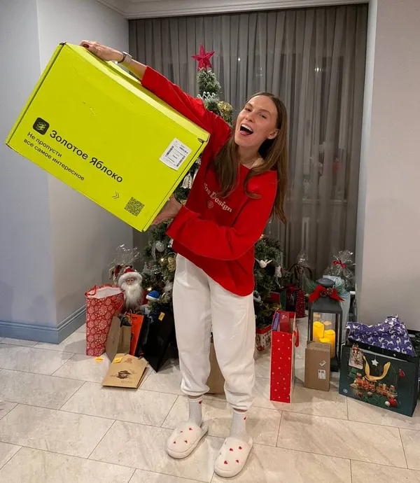 Конькобежка Александра Саютина провела самый волшебный день в году с семьей. Одним из ее подарков стала мечта всех девушек — большая коробка с косметикой из «Золотого яблока».