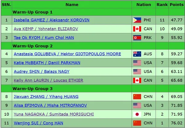 Лидерство в турнире парников захватили великие Суй Вэньцзинь и Хань Цун. При этом после проката партнерша держалась за бедро. Возможно, на произвольную программу китайцы выйдут с облегченным контентом, все-таки небольшой запас есть. Или вообще снимутся — зачем рисковать перед Олимпиадой?