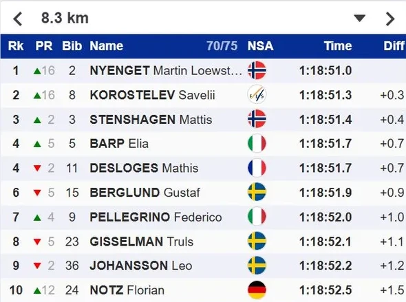 Шестикратный олимпийский чемпион норвежец Йоханнес Клебо показал лучший результат в квалификации спринта классическим стилем на Олимпийских играх — 2026 в Италии. Он преодолел дистанцию за 3.07,3.