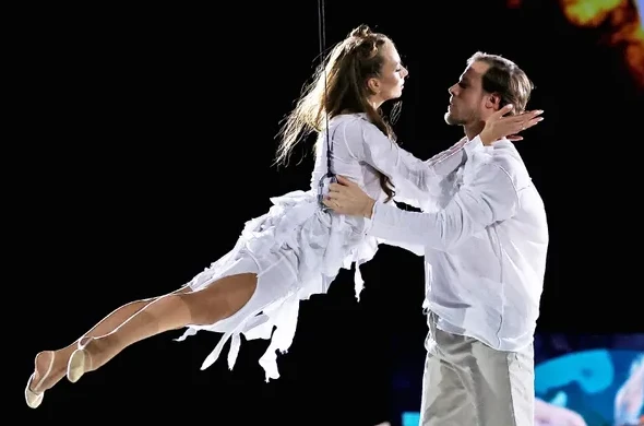 По решению судей лучшими стали ВикторияСиницинаиНикитаКацалапов. Удивительно, но фигуристы решили не сниматься с «Русского вызова», хотя недавно партнерша получила серьезную травму на шоу. Они решили переделать номер так, что Виктория была на тросах и без коньков, а всю основную работу выполнял Никита. Для них это не составило труда — похожие мизансцены они уже показывали в спектаклях Татьяны Навки. Все же сам номер получился простым и без изысков.