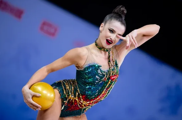 В тройку лидеров попала МиленаЩенятская. Эта спортсменка также не выступала на Кубках мира, ее отправляли на менее серьезные зарубежные турниры. Несмотря на то что программа с обручем старая, именно здесь была серьезная неточность. На риске предмет улетел в другую сторону, пришлось перестраиваться, из-за чего слетел рисунок линии, но хотя бы без потери. Мяч получился намного лучше: мелкая грязь, конечно, проявлялась, но исполнению не вредила. Щенятская примерно на 0,7 балла обходит Янус. С 56,500 балла она очевидный претендент на медаль.