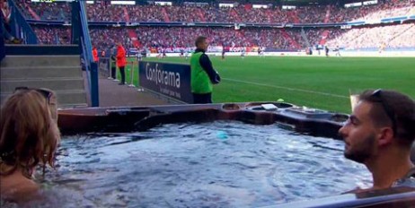 Французский «Кан» создал для болельщиков необычные места на стадионе. Как передает Oxu.Az, за матчем 5-го тура Лиги 1 «Кан» - «Лион» несколько фанатов наблюдали из джакузи у поля с шампанским в руках. Во втором тайме в джакузи отправились два других болельщика. Такая возможность представилась благодаря тому, что «Кан» в рамках партнерства с одним из центров талассотерапии провел в соцсетях конкурс, в рамках которого и разыграл билеты на места в джакузи. .